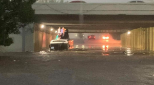 En el municipio de Corregidora un auto cayó en un socavón y fue arrastrado por la corriente al canal de Avenida Candiles , elementos de Protección Civil implementan un operativo para el rescate del conductor.