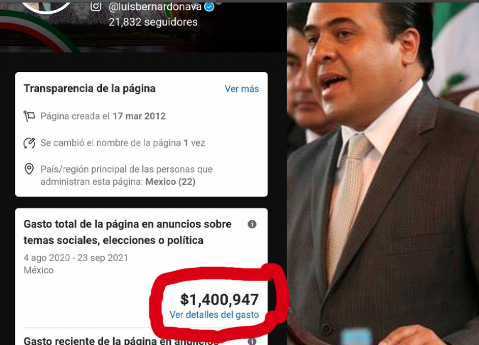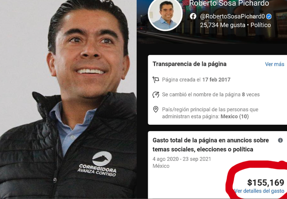 La mayor parte del dinero gastado en publicidad provino del Partido Acción Nacional, de acuerdo con los datos de la plataforma el partido contrató anuncios por 888 mil pesos, el resto fue adquirido por Luis Nava.